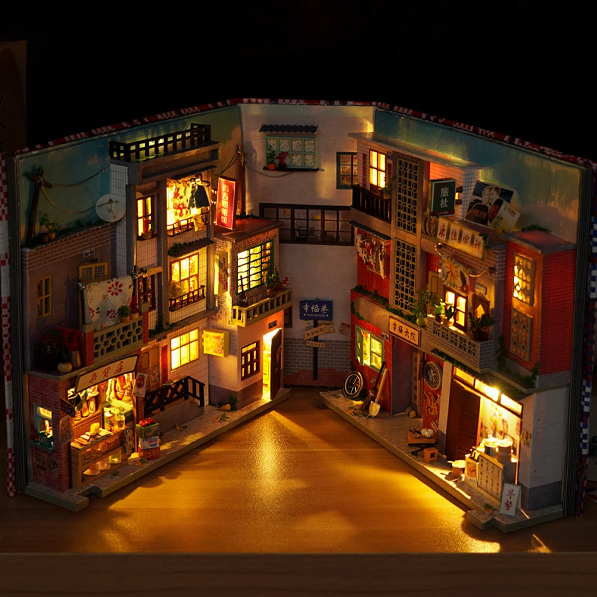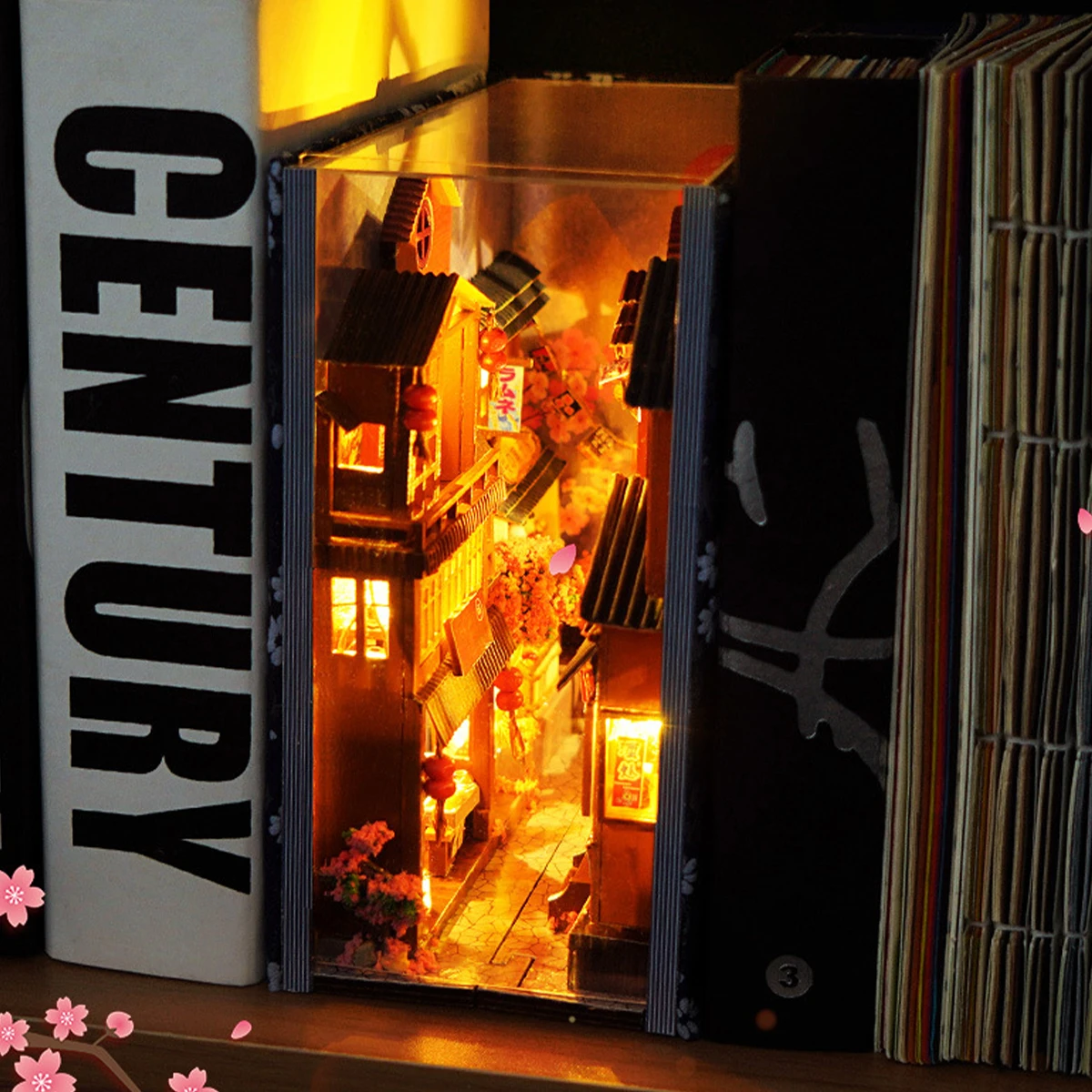 3D Wooden Puzzle DIY Book Nook Kit Bookend Shelf Insert Alley Miniature Dollhouse Model Building Set Craft for Home Decoration