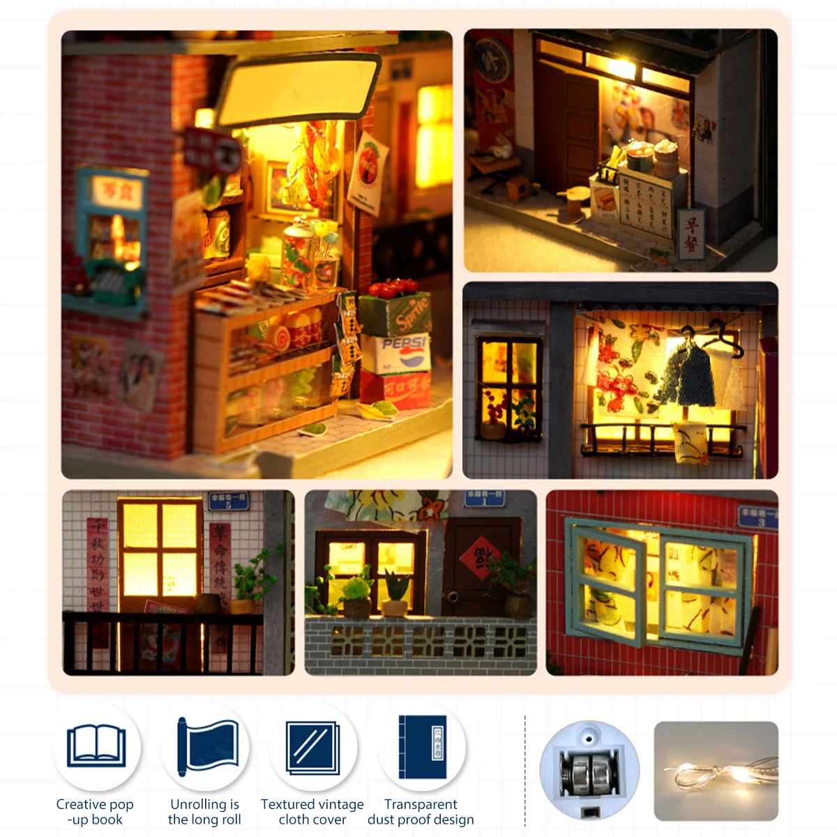 [Easy to Assemble] The book nooks are made of high-quality wood, which is strong and durable; after precise cutting, the wooden blocks can be easily ejected from the frame to facilitate their correct combination and splicing; LED lights, decorations and wall cabinets are also vividly portrayed, as if to restore the real scene, which will make you much amazed.