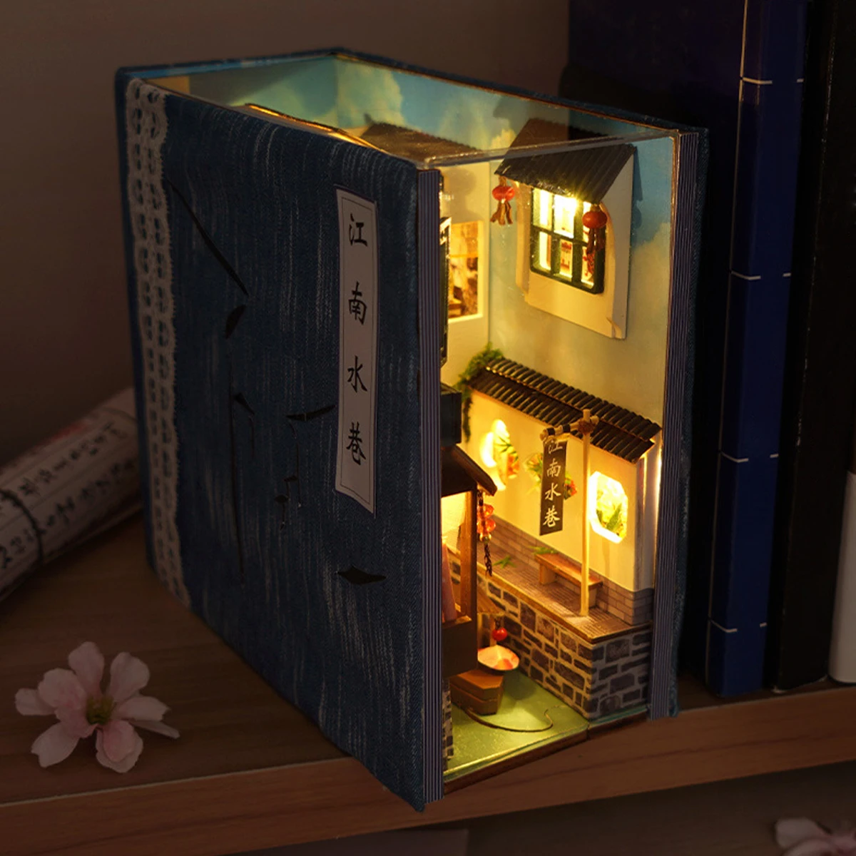[Exquisite Design] The book nook can be opened and closed, and the scenery inside is characteristic and immersive.