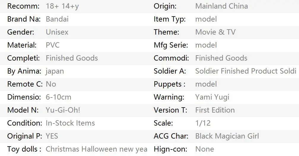 6Pcs/Set Yu-Gi-Oh! Yami Yugi Muto Black PVC Figure Model Toy
