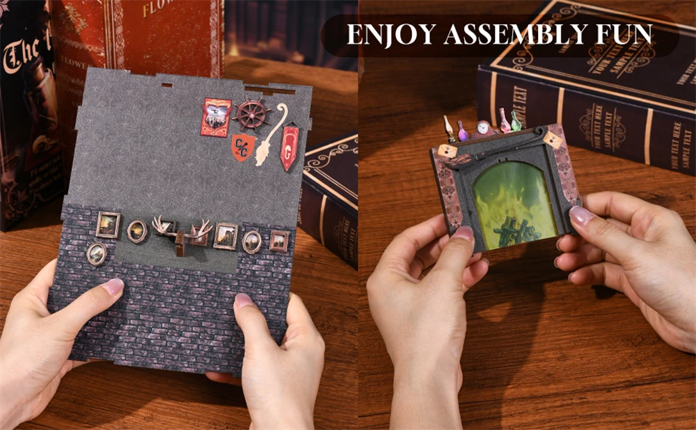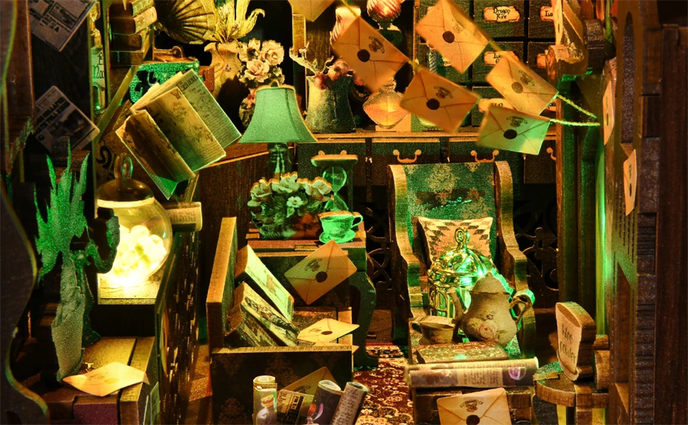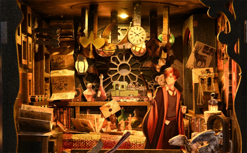 【Bookshelf Insert /Desk Decor 】�� Book nook is more than just a DIY bookend crafts, also an exquisite collection and decoration. The book nook kit combines a 3D diorama, book corner and decoration in one. The 3D puzzle house is like a miniature of a real divination world. Almost all the scenes need to be made by you. Elegant home decor inside a bookshelf or on a desk. It looks great in the dark with the lights on.