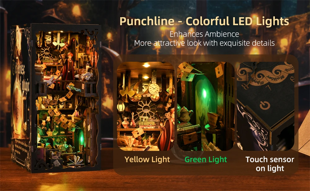【Exquisite Details - Warm & Green LED Lights】�� Wheel of Fate (can rotate), Death, Witch, Mysterious Green Light... Exquisite details,magical lighting - No one would refuse such a creative and wonderful gift! This is more refined than an ordinary handicraft. In addition to experiencing the fun of DIY, the bookend can also be used as an ornament. As a gift to family, friends or couples to enhance the intimacy between you.